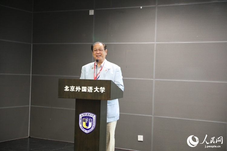 北京外國語大學(xué)日語學(xué)院院長、日本學(xué)研究中心主任周異夫發(fā)表致辭。人民網(wǎng)記者 趙雯博攝