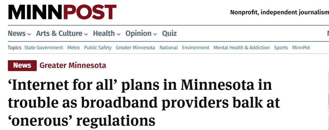 另據(jù)《明尼蘇達(dá)郵報(bào)》(MinnPost)25日?qǐng)?bào)道,當(dāng)明尼蘇達(dá)電信聯(lián)盟(Minnesota Telecom Alliance)總裁兼首席執(zhí)行官布倫特·克里斯滕森(Brent Christensen)被問到有多少會(huì)員將參與BEAD計(jì)劃時(shí),他迅速做出了“零”的回答??死锼闺f,由于附帶的規(guī)章制度,他們都不會(huì)競(jìng)標(biāo)聯(lián)邦補(bǔ)助金。該州的有線電視公司也對(duì)這項(xiàng)計(jì)劃的新舉措感到不滿。明尼蘇達(dá)州有線通信協(xié)會(huì)梅麗莎·沃爾夫(Melissa Wolf)認(rèn)為,“提供低成本選擇對(duì)于小型供應(yīng)商來說是行不通的”。