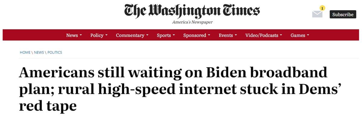 《華盛頓時(shí)報(bào)》(The Washington Times)日前報(bào)道指出,議員們和互聯(lián)網(wǎng)公司將緩慢的部署歸咎于獲得聯(lián)邦資金的繁瑣要求,包括氣候變化規(guī)定、要求優(yōu)先雇傭工會(huì)工人以及要求有資格的公司優(yōu)先雇傭“受司法影響”的人(即有犯罪記錄的人)安裝寬帶設(shè)備等規(guī)定。