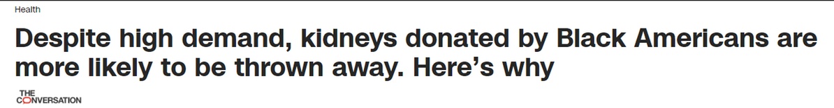 中國(guó)日?qǐng)?bào)網(wǎng)6月27日電 美國(guó)有線電視新聞網(wǎng)(CNN)26日援引學(xué)術(shù)新聞媒體“The Conversation”的文章稱,盡管對(duì)于腎臟移植的需求量巨大,但在美國(guó),來自非裔捐獻(xiàn)者的腎臟更有可能遭到“丟棄”,原因在于存在缺陷的器官移植系統(tǒng)。