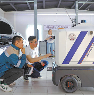 在汽車維修技術(shù)實訓(xùn)區(qū),學(xué)生們正在老師的指導(dǎo)下熟悉車輛構(gòu)造及運行原理。東哈薩克斯坦技術(shù)大學(xué)機(jī)械工程教研室教授穆拉特·穆茲迪巴耶夫告訴記者,目前該校汽車專業(yè)課程已與實訓(xùn)區(qū)對接,學(xué)生們都喜歡來這里上課,由中方提供的整車和發(fā)動機(jī)等零部件都是很新的款式,涵蓋傳統(tǒng)能源、電動和混合動力等多種車型,對于提升學(xué)生實操能力非常重要。