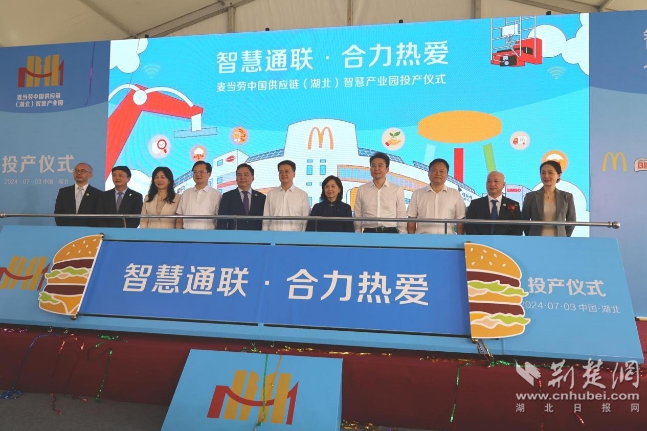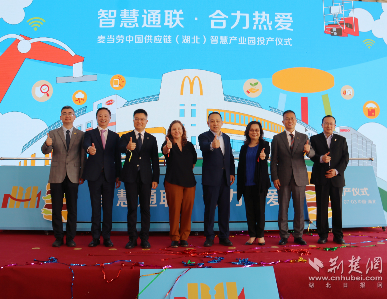 隨后,王濟(jì)民、吳慶華、夏齊勇,孝感市商務(wù)局領(lǐng)導(dǎo)余小麗,區(qū)領(lǐng)導(dǎo)張全民以及供應(yīng)商代表共同宣布麥當(dāng)勞中國(guó)供應(yīng)鏈(湖北)智慧產(chǎn)業(yè)園全面投產(chǎn)。