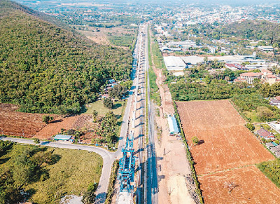 2023年2月23日在泰國呵叻府拍攝的中泰鐵路建設(shè)現(xiàn)場(chǎng)(無人機(jī)照片)。新華社記者 王騰攝