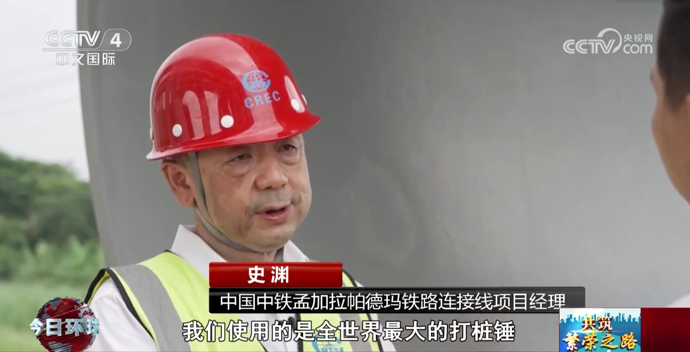 中國中鐵孟加拉帕德瑪鐵路連接線項目經(jīng)理史淵介紹:“為了把這個3米直徑、6公分厚的鋼管樁打入帕德瑪河的基層,我們使用的是全世界最大的打樁錘,全世界就三臺,全部都在我們這個項目進行施工。經(jīng)過三四年的艱苦努力,完成了這部分工作,非常不容易?!?/p>