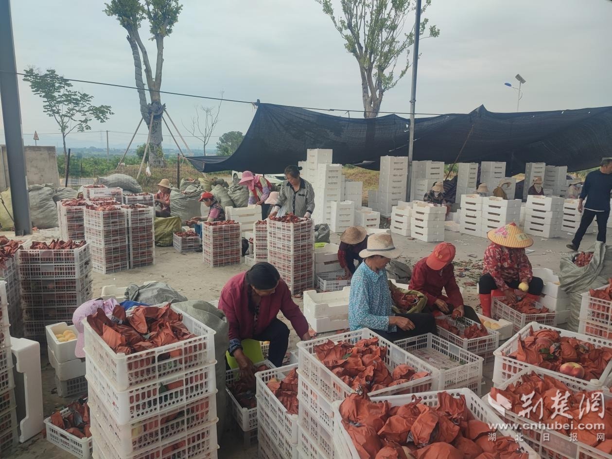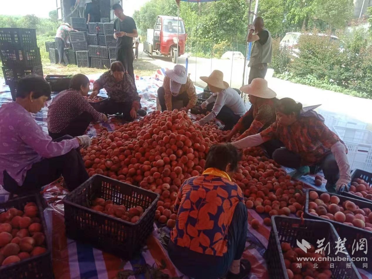 桃園內(nèi),桃農(nóng)們正忙著將清晨摘下的桃子進(jìn)行稱重、裝箱。眼下,全國(guó)各地瓜果飄香。在楊店鎮(zhèn),萬(wàn)畝桃園陸續(xù)成熟。清脆可口、香甜多汁的桃也成為當(dāng)?shù)氐奶厣止?,帶?dòng)農(nóng)戶增收。