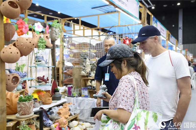 游客在蘭納博覽會特色展位上選購工藝品。人民網(wǎng)記者 楊一攝