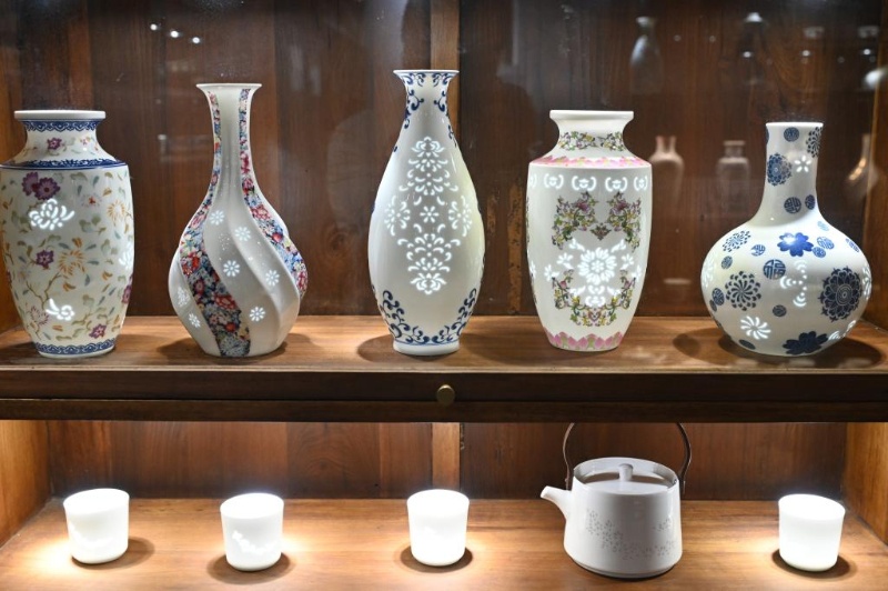 這是6月5日在江西景德鎮(zhèn)一個創(chuàng)意瓷器作坊內(nèi)拍攝的鏤空技藝陶瓷作品。新華社記者劉天宇攝