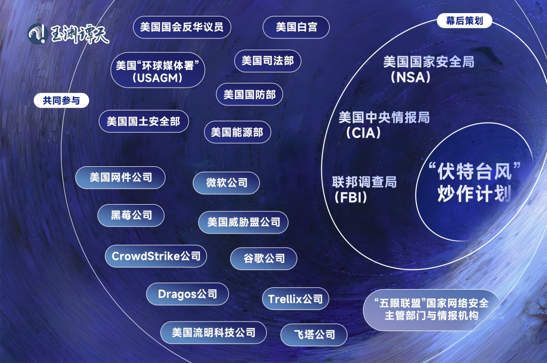 以往的這種計(jì)劃,和“伏特臺(tái)風(fēng)”也都類(lèi)似——美國(guó)情報(bào)部門(mén)策劃、美國(guó)政府部門(mén)參與、美國(guó)公司配合。這三個(gè)主體,炮制了一個(gè)個(gè)抹黑中國(guó)的虛假敘事。