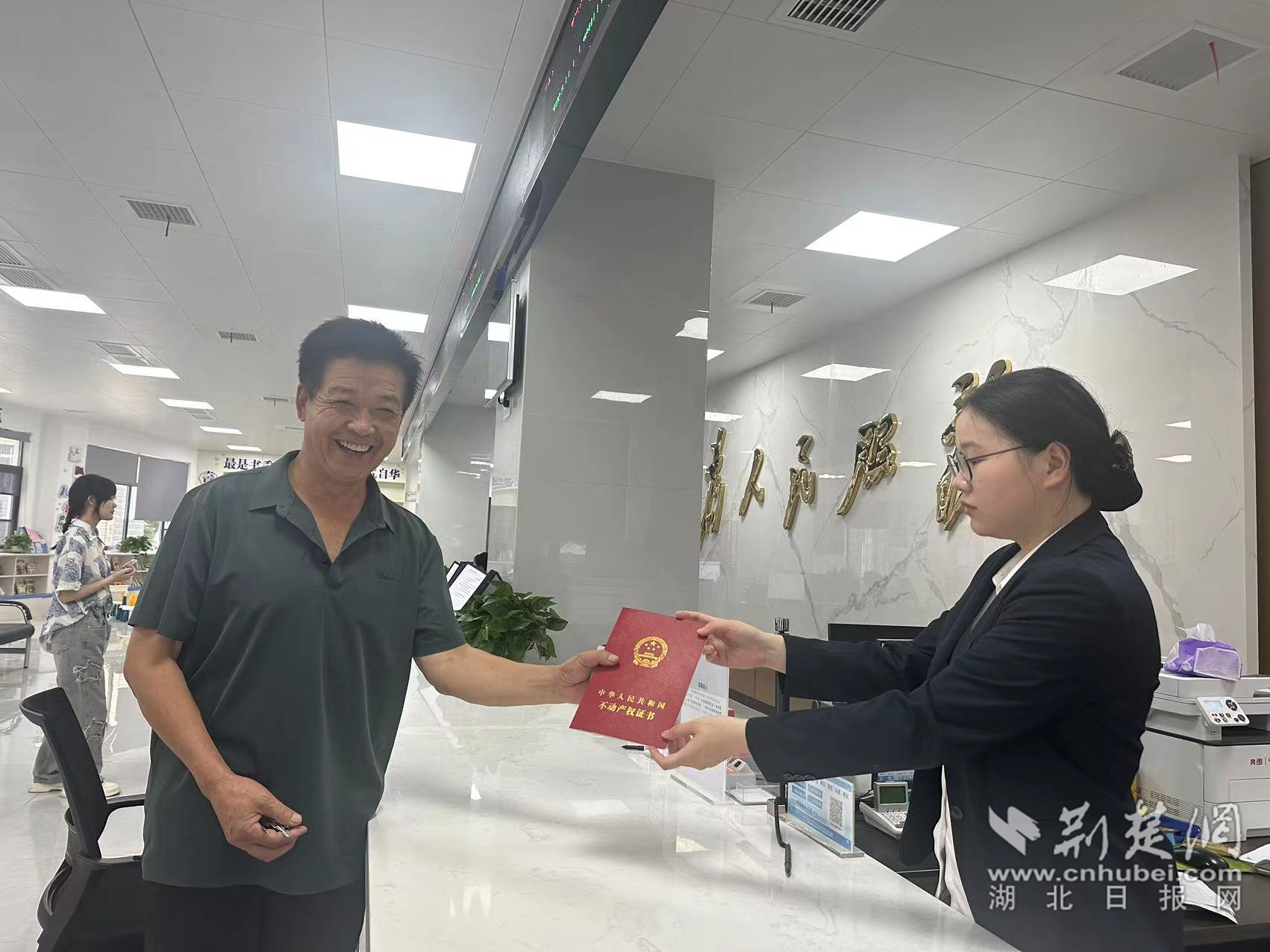 荊楚網(wǎng)(湖北日報網(wǎng))訊(通訊員饒杰、羅侃)“審批在鄉(xiāng)鎮(zhèn)、拿證也在鄉(xiāng)鎮(zhèn)?,F(xiàn)在農(nóng)房辦證不用出肖港就完成了,感謝政府的好政策,讓我們節(jié)省了大量時間和精力!”近日,肖港鎮(zhèn)葉大哥在該鎮(zhèn)便民服務(wù)中心工作人員手中拿到農(nóng)房不動產(chǎn)權(quán)證時開心地說。