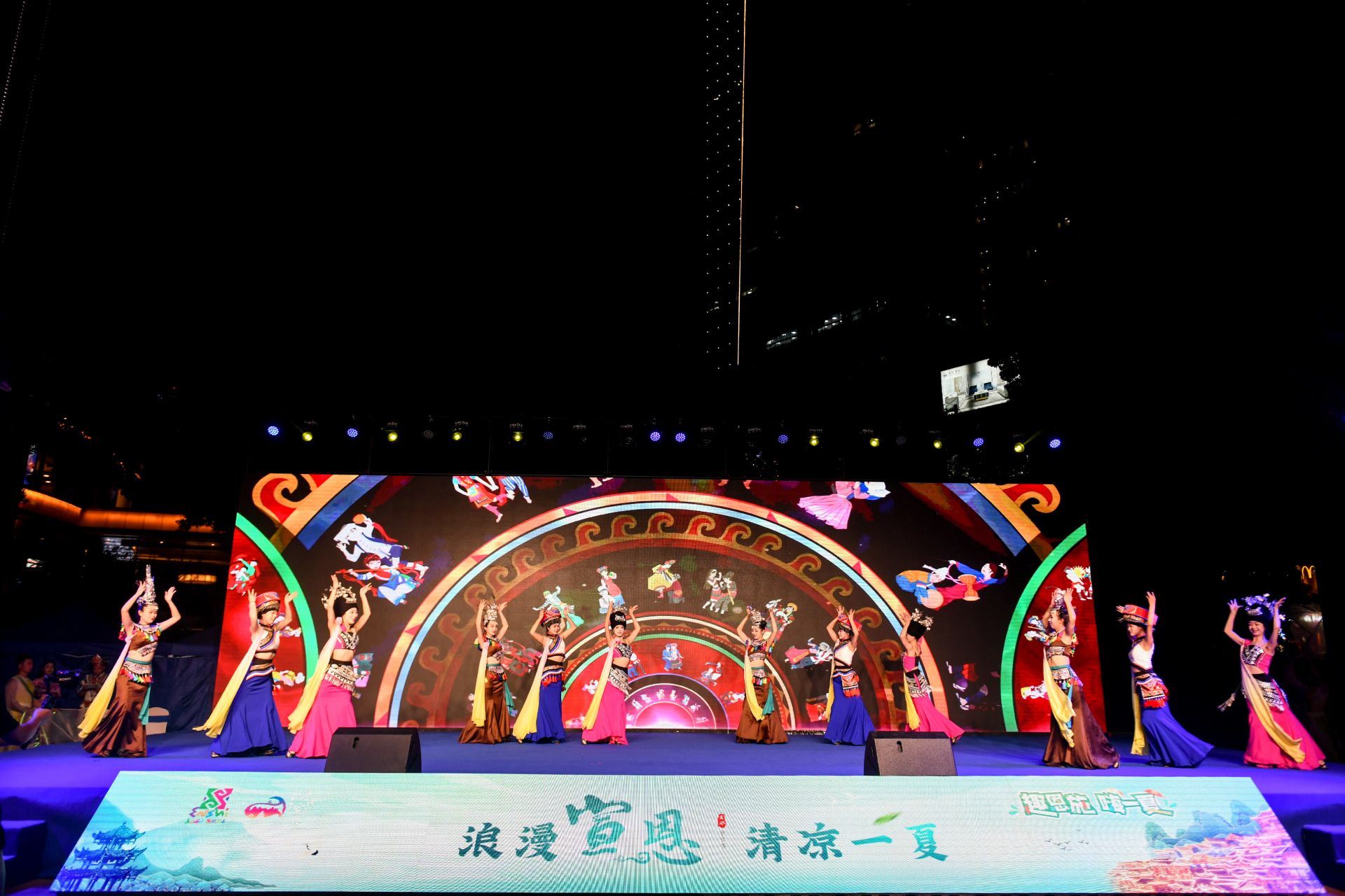 連日晴熱,武漢的夏夜,仍暑氣逼人,但當(dāng)晚的西北湖廣場(chǎng),現(xiàn)場(chǎng)觀眾的熱情絲毫不減。推介會(huì)現(xiàn)場(chǎng),推介官結(jié)合音樂(lè)、舞蹈、表演等多種藝術(shù)形式,用情景劇的方式沉浸式推介,將宣恩的玩樂(lè)攻略、民族文化、節(jié)慶賽事等文旅資源,生動(dòng)直觀地呈現(xiàn)在觀眾面前,帶給觀眾身臨其境之感。《宣恩耍耍》《左右連廂舞豐年》《我是土家人》等多個(gè)少數(shù)民族特色的歌舞節(jié)目輪番上演,獨(dú)特的民族風(fēng)情讓觀眾提前感受到了宣恩的浪漫與熱情。
