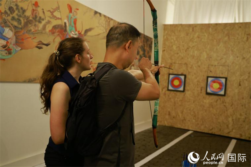 現(xiàn)場(chǎng)觀眾在開幕式上體驗(yàn)射箭項(xiàng)目。人民網(wǎng)記者 尚凱元攝