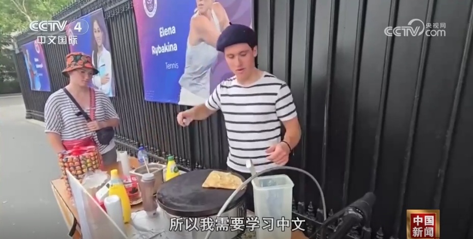 而更讓我們印象深刻的是我們?cè)趧P旋門旁遇到的制作法式煎餅的巴黎小伙,聽到我們從中國(guó)來,他直接用中文跟我們交談了起來。
