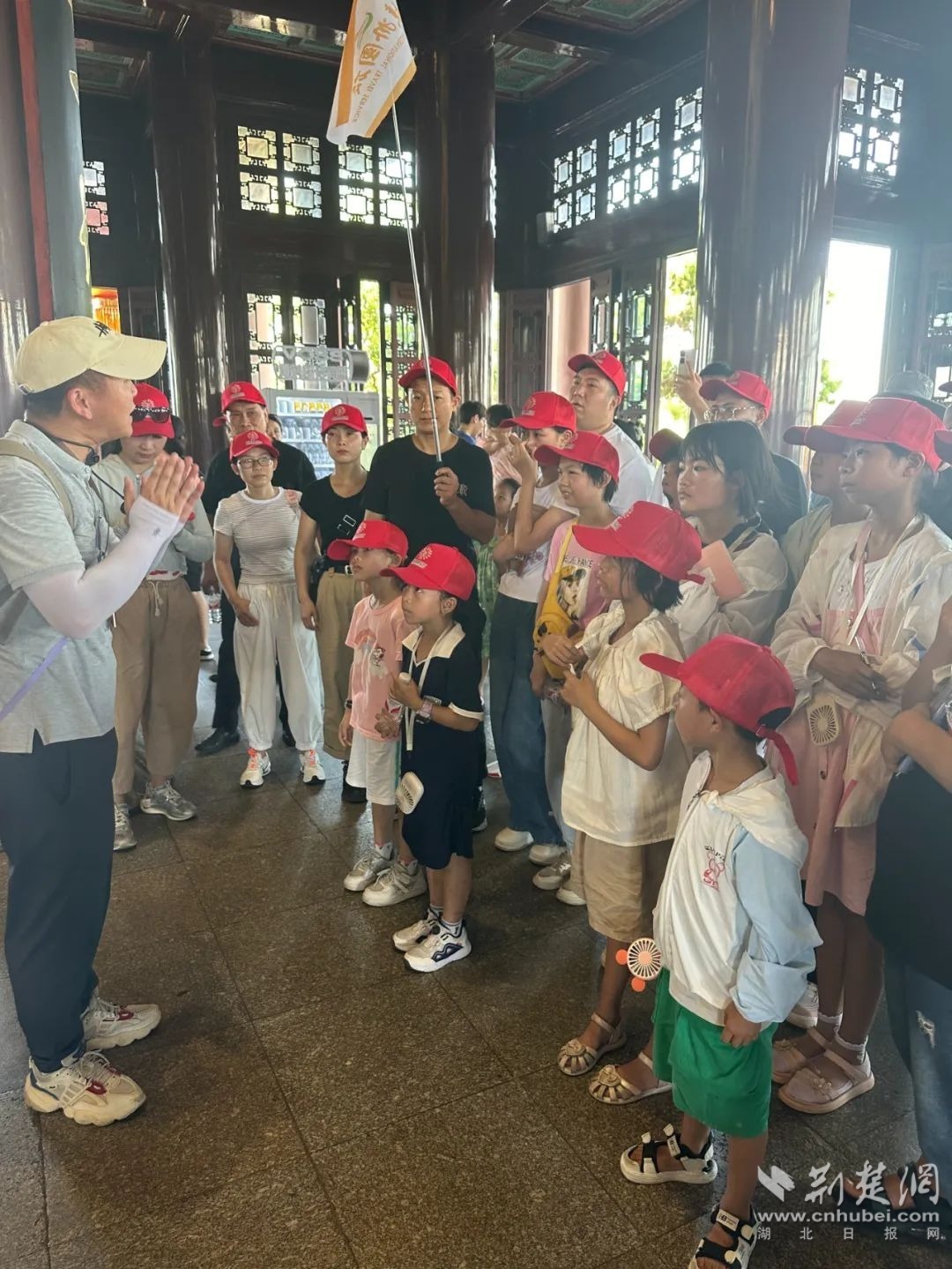 上午9:50分,12名武漢志愿者代表的孩子迎接11名來自大悟縣的同齡小朋友,在同心公社志愿者引導(dǎo)下,23名孩子手牽手一起走上黃鶴樓,兩地孩子開啟一段快樂的“結(jié)對游學(xué)之旅”。