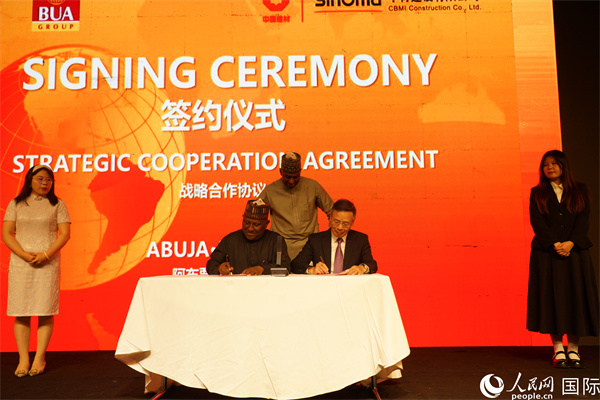 中材建設(shè)與布瓦集團(tuán)簽署戰(zhàn)略合作協(xié)議。人民網(wǎng)記者 姜宣攝