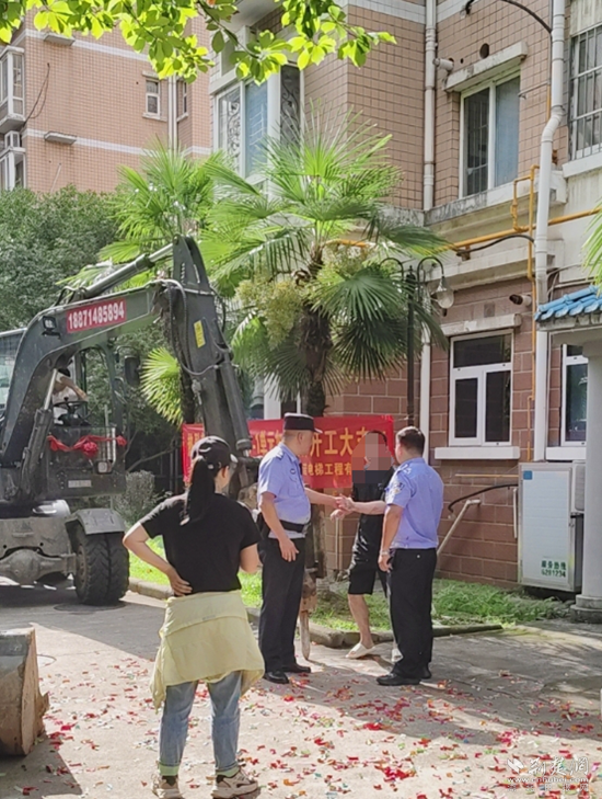 當(dāng)天上午,正當(dāng)黃石天方小區(qū)某單元住戶們慶祝加裝電梯開工大吉之時,該單元一樓住戶盧某跳了出來,以對補償不滿意等為由,大鬧施工現(xiàn)場。社區(qū)工作人員、居民雖多次上前勸阻,但盧某均不予理會。萬般無奈之下,施工方只得報警求助。民警現(xiàn)場了解情況后,將盧某帶離施工現(xiàn)場,并進行了法律教育和宣傳引導(dǎo)。