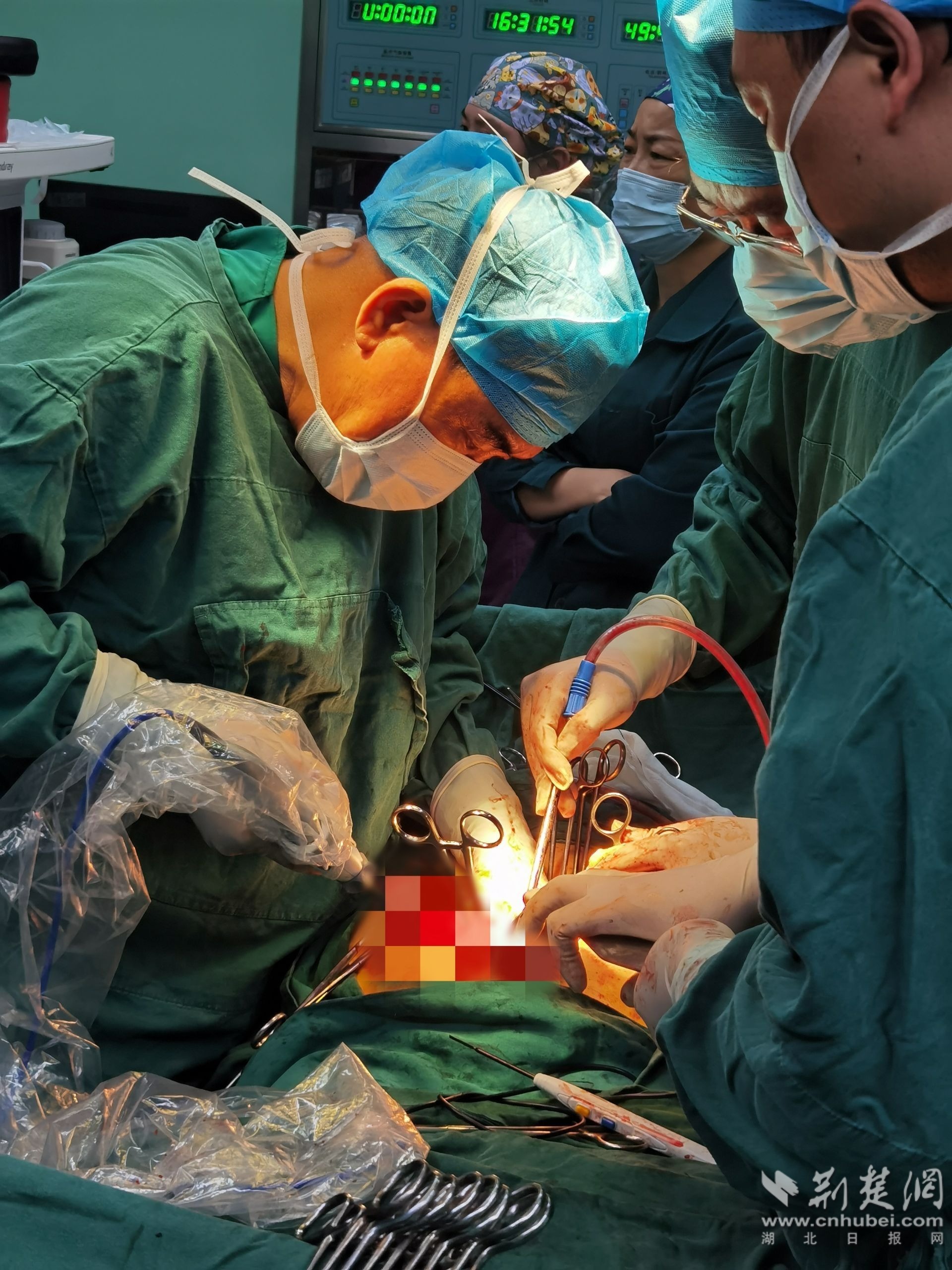 手術(shù)團(tuán)隊(duì)細(xì)心分離,經(jīng)過八個(gè)多小時(shí)的努力,終于將腫瘤和受侵犯的部位完整切除,保住了王奶奶的膀胱及腸道。