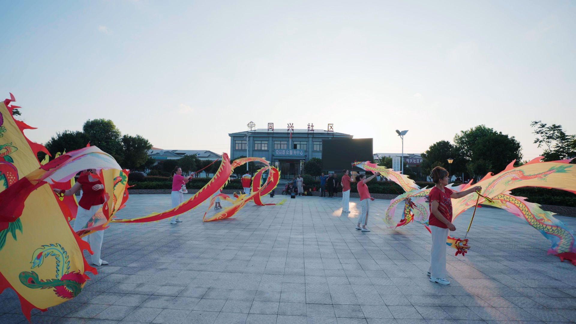 居民在同心社區(qū)黨員群眾服務(wù)中心門口舞龍