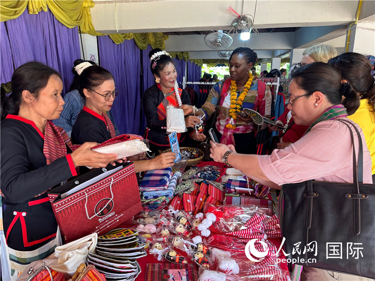 駐泰外交官成員購(gòu)買村民手工藝品。人民網(wǎng)記者 簡(jiǎn)承淵攝