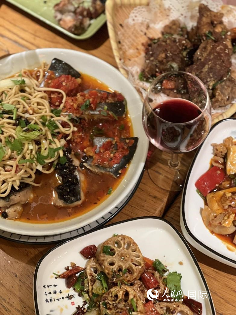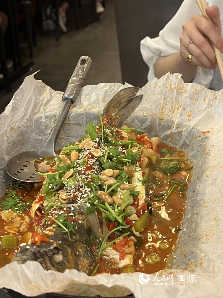 在巴黎川里川外川菜館品嘗口味正宗的烤魚。人民網(wǎng)記者 何蒨攝