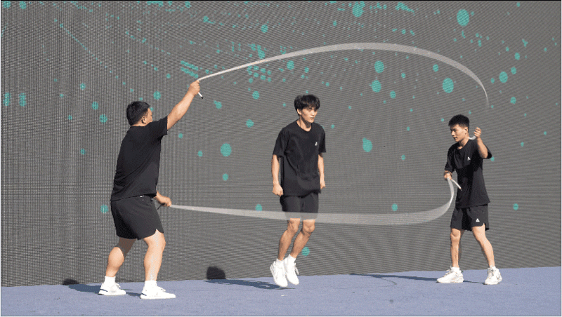 中南民族大學(xué)融健身與技巧為一體的花式跳繩燃動(dòng)全場(chǎng)。