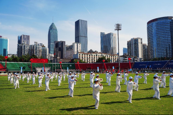 現(xiàn)場(chǎng)還有大氣蓬勃、翩翩起舞的88條彩帶龍;剛?cè)嵯酀?jì)、動(dòng)靜結(jié)合的傳統(tǒng)太極拳;場(chǎng)面震撼、整齊劃一的楚天健美走……豐富多彩的活動(dòng)打造全民參與的體育盛會(huì),展示著湖北群眾體育的蓬勃生命力!