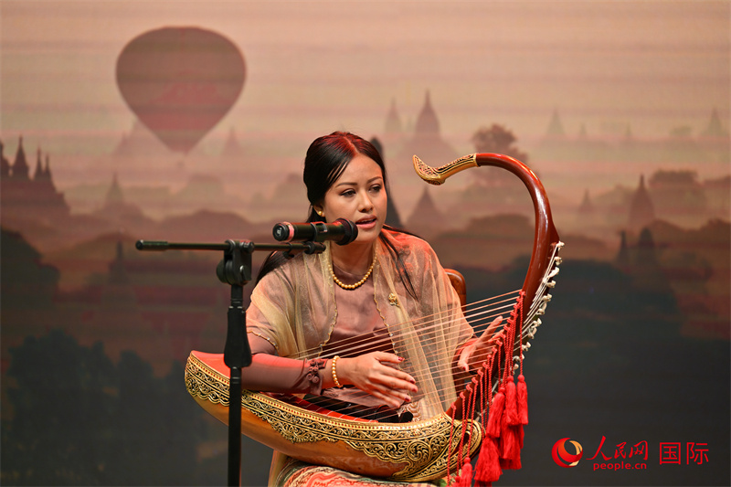 緬甸藝術家在開幕式上表演緬甸傳統(tǒng)樂器彎琴。人民網(wǎng)記者 謝佳君攝