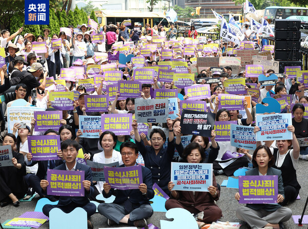 當(dāng)天中午,“正義記憶連帶”團(tuán)體在日本駐韓國(guó)大使館前舉行1661次定期集會(huì),敦促日本政府向“慰安婦”受害者正式道歉并予以法律賠償,要求韓國(guó)政府恢復(fù)“慰安婦”受害者的名譽(yù)等。數(shù)百名首爾市民、學(xué)生,以及最大在野黨共同民主黨全國(guó)女性委員長(zhǎng)李在禎等政界人士也參加了當(dāng)天的集會(huì)。
