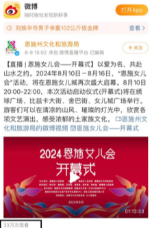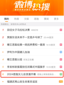 (1)#2024恩施女兒會浪漫開幕#歡迎大家來恩施女兒會#榮登微博熱搜榜和抖音同城熱搜榜一,助力高光傳播