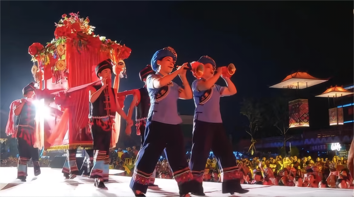 今年的恩施女兒會不斷創(chuàng)新,活動內(nèi)容致敬傳統(tǒng)又超越傳統(tǒng)范疇,更加多元、時尚、融合?,F(xiàn)場有傳統(tǒng)的民俗風(fēng)情和非遺表演,如趕場相親、哭嫁習(xí)俗、恩施耍耍、氣勢磅礴的國家級非遺項(xiàng)目肉連響、神秘莫測的儺戲等美輪美奐的精彩演繹。