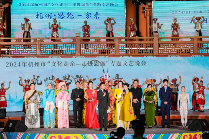 以“緣相親心相近”為主題的杭州-恩施文化走親文藝演出也在恩施女兒城廣場舉行,這場演出搭建起文化橋梁,緊密地連接恩施與杭州這兩座有著山海情緣的城市,共繪文化交流與情感共鳴的斑斕圖景。