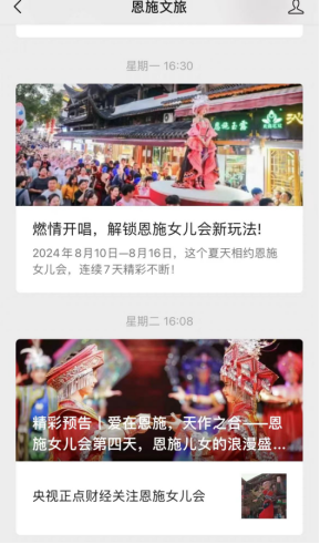 話題#2024恩施女兒會# #愛上女兒會# #知音湖北遇見恩施女兒會# #對歌對上心上人# 在新浪、抖音、視頻號等平臺攬獲強(qiáng)曝光,話題播放量近1000萬+,恩施文旅矩陣、湖北廣電矩陣、頭部旅游自媒體博主多維度、多角度發(fā)布短視頻,引發(fā)粉絲關(guān)注和創(chuàng)作,引燃恩施女兒會。