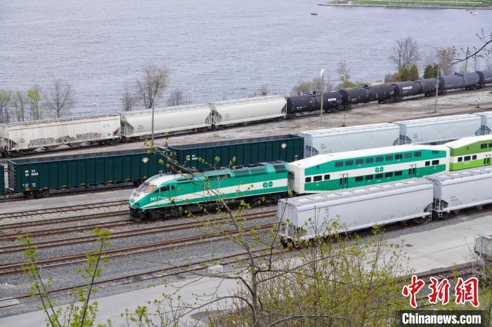 資料圖為2024年5月4日,加拿大安大略省漢密爾頓的鐵路貨運(yùn)、客運(yùn)列車。中新社記者 余瑞冬 攝