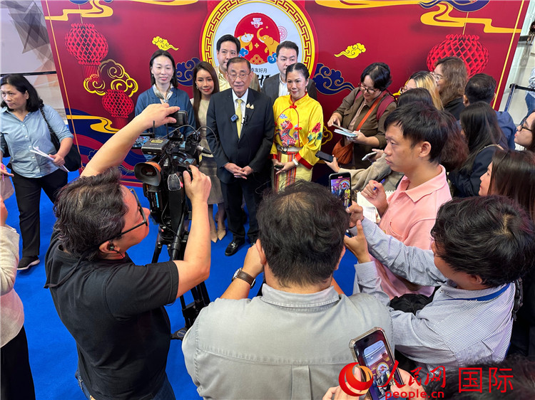 泰國(guó)旅游和體育部部長(zhǎng)頌薩·蓬帕尼接受媒體采訪。人民網(wǎng)記者 簡(jiǎn)承淵攝