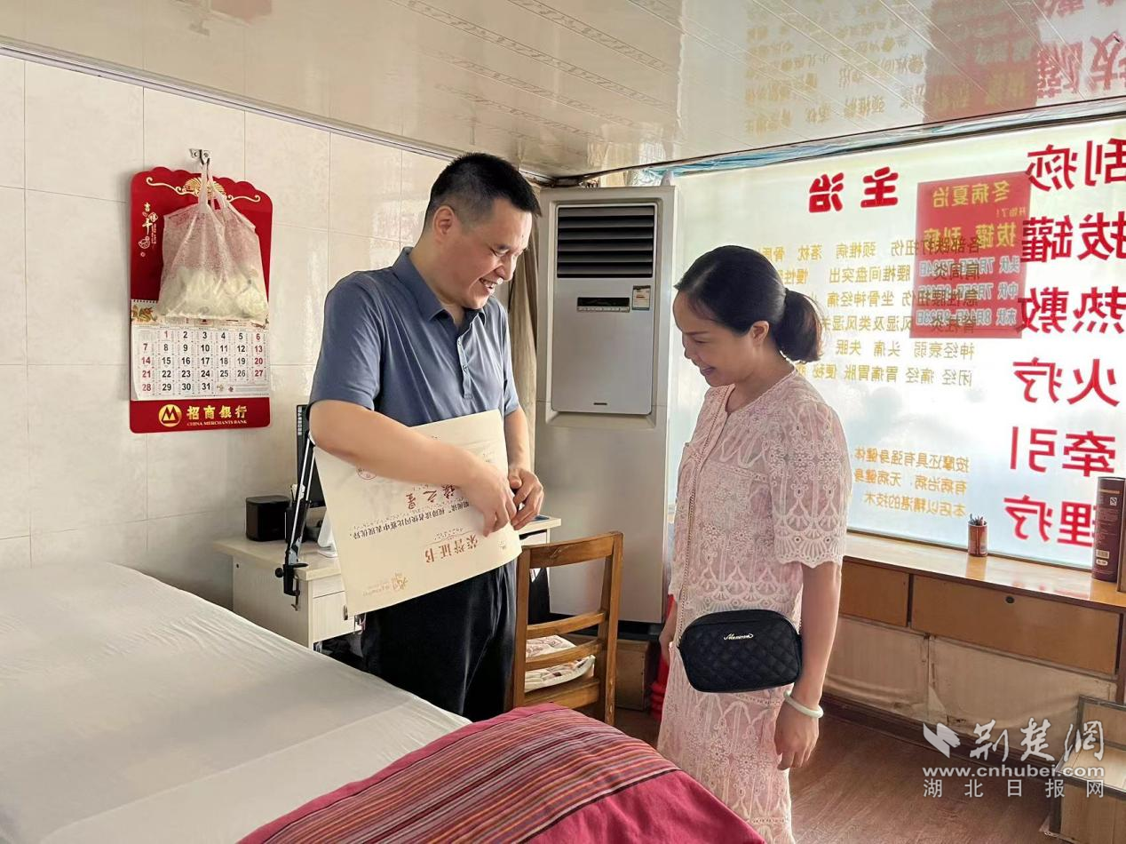 “太感謝了!這么熱的天氣還專門來跟我送證書!”從孝南區(qū)殘聯(lián)工作人員手中接過榮譽(yù)證書,車站街民主社區(qū)視力殘疾人梁國紅用手不停的摸索著證書上面的盲文,臉上露出了燦爛的笑容。