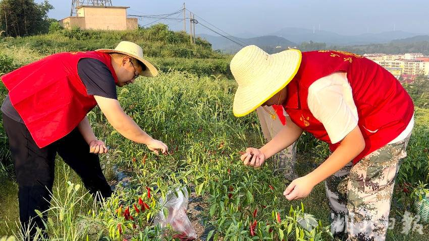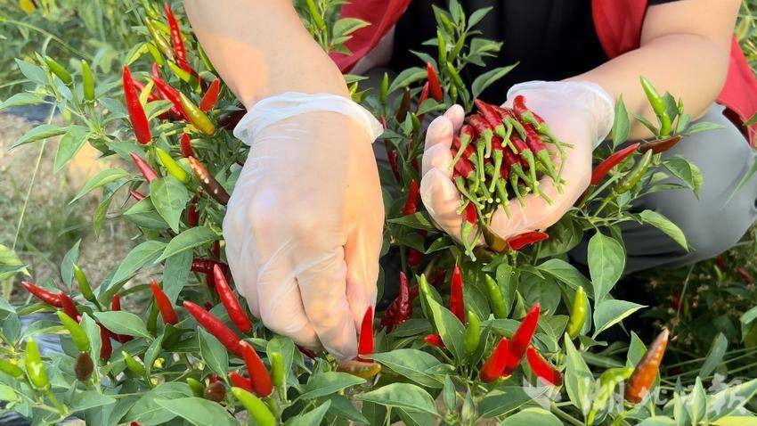 當天,志愿者們化身“采椒能手”,穿梭于紅綠交錯的田間,手不停歇地采摘成熟的辣椒,與農戶一起投入到緊張而有序的工作中。經過一天的努力,志愿者們共采摘辣椒超過1800斤,極大地加快了辣椒的采收進度。此外,志愿們還為農戶送去了礦泉水、綠茶等防暑降溫物資,確保他們能夠及時補充水分,預防中暑。
