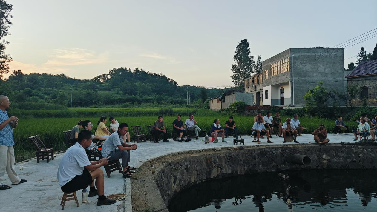 遇事大家議、決策大家定、有事大家干,大悟縣彭店鄉(xiāng)青山村皂角樹灣當(dāng)家塘東頭,一場“村灣夜話”聚起了人氣。