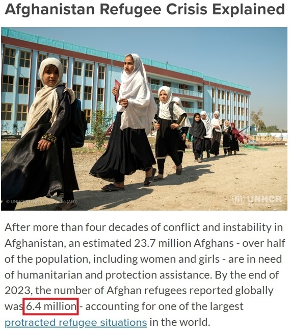 聯(lián)合國難民署發(fā)布報(bào)告顯示,截至2023年底,全球報(bào)告的阿富汗難民人數(shù)為640萬,是世界上曠日持久的難民危機(jī)中規(guī)模最大的之一。