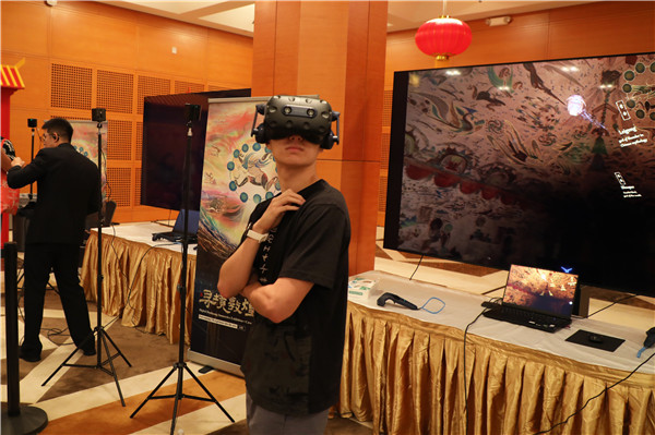 在本次活動(dòng)的展覽現(xiàn)場(chǎng),敦煌研究院與騰訊展示了“數(shù)字藏經(jīng)洞”和“尋境敦煌”等創(chuàng)新互動(dòng)產(chǎn)品。來(lái)賓們參觀敦煌高清攝影和壁畫高保真復(fù)制品,通過(guò)VR虛擬游覽洞窟、實(shí)時(shí)拍攝紀(jì)念視頻、體驗(yàn)“數(shù)字藏經(jīng)洞”云游戲,沉浸式體驗(yàn)敦煌文化?!皩ぞ扯鼗汀本C合應(yīng)用了三維建模技術(shù)、游戲引擎的物理渲染和全局動(dòng)態(tài)光照、VR虛擬現(xiàn)實(shí)場(chǎng)景等前沿游戲科技。在現(xiàn)場(chǎng),當(dāng)?shù)孛癖娕宕鱒R頭顯,能夠看到1∶1高精度立體還原的敦煌莫高窟第285洞窟,探索洞窟細(xì)節(jié)、零距離觀賞壁畫。據(jù)介紹,此次活動(dòng)展出“數(shù)字藏經(jīng)洞”和“尋境敦煌”兩款數(shù)字文博創(chuàng)新產(chǎn)品,是敦煌研究院與騰訊的合作成果,也是首次走向海外線下展出。