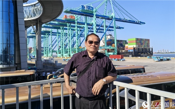 老撾國(guó)民議員、外事委員會(huì)副主席占塔馮·顯阿瑪蒙迪參觀天津港。人民網(wǎng) 鐘文興攝