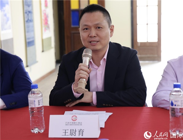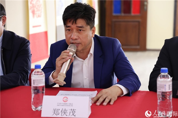 巴西中國(guó)浙江商會(huì)會(huì)長(zhǎng)鄭俠茂在座談會(huì)上致辭。人民網(wǎng)記者 宋亦然攝