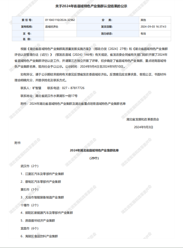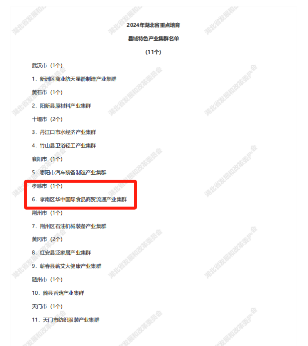 荊楚網(wǎng)(湖北日報網(wǎng))訊(記者 楊卓玉)9月3日,湖北省發(fā)改委公布2024年省縣域特色產(chǎn)業(yè)集群認(rèn)定結(jié)果公示名單,孝感市6大產(chǎn)業(yè)集群入選。