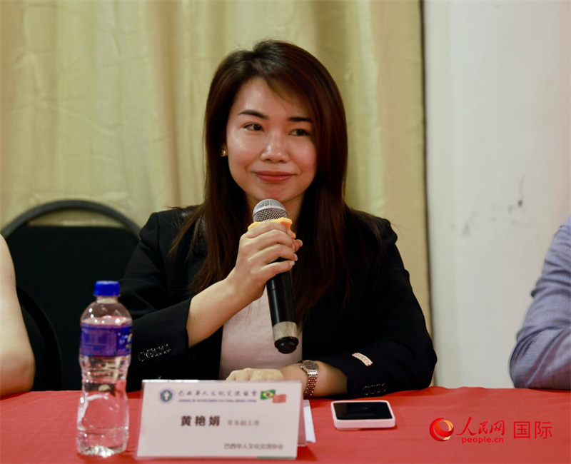 巴西文協(xié)常務(wù)副主席、廣東籍僑胞黃艷娟致歡迎詞。人民網(wǎng)記者 宋亦然攝