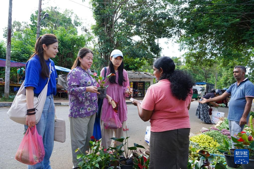 9月4日,斯里蘭卡薩伯勒格穆沃大學(xué)孔子課堂院長(zhǎng)朱頌(左二)、教師夏子涵(左三)和張歡(左一)在學(xué)校附近每周一次的傳統(tǒng)集市上采購(gòu)。新華社記者 陳冬書(shū) 攝