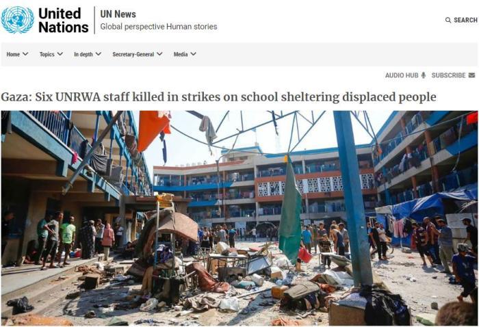報道稱,當天,古特雷斯當天在社交媒體發(fā)文稱,“加沙地帶一所用作避難所的學校收容了約1.2萬人,該校今天再次遭到以色列空襲,遇難者中包括6名近東救濟工程處工作人員。”