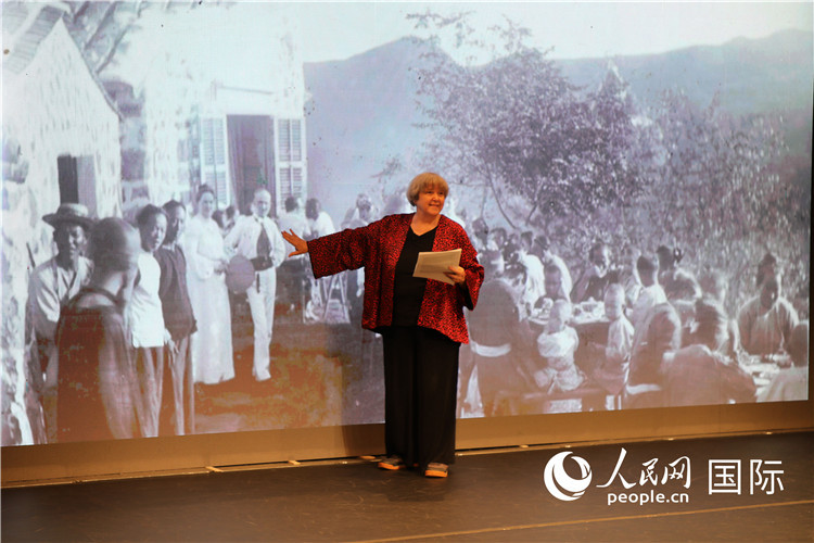 美國“鼓嶺之友”代表穆言靈講述友好故事。人民網(wǎng)記者 李志偉攝