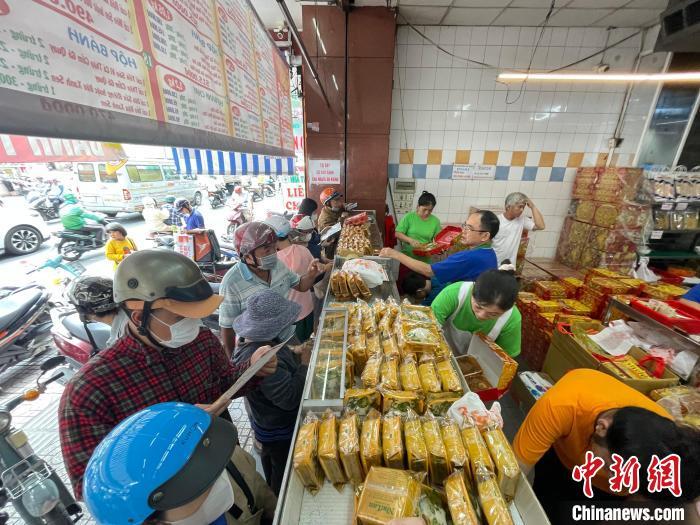 圖為越南胡志明市市民在購(gòu)買中秋月餅。饒艷玲 攝