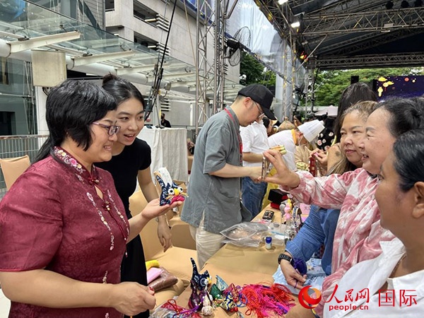 泰國(guó)觀眾在中泰文化展臺(tái)交流打卡。人民網(wǎng)記者 張矜若攝
