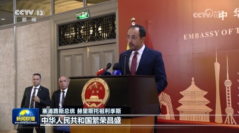 在中國駐塞浦路斯大使館舉行的活動上,塞浦路斯總統(tǒng)赫里斯托祖利季斯、多位政府部長等各界人士約500人出席,來賓們共同欣賞傳統(tǒng)民歌表演、兩國兒童畫展等。