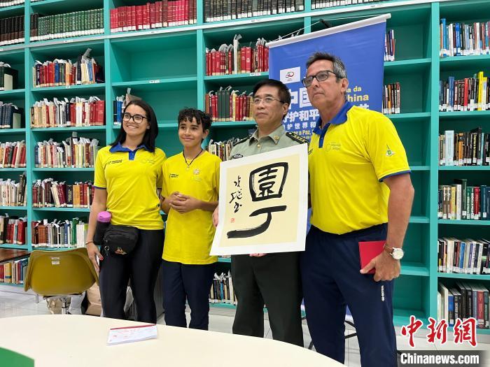 當(dāng)?shù)貢r(shí)間9月23日,中國(guó)軍事文化周“中國(guó)日”活動(dòng)在巴西國(guó)防部高等防務(wù)學(xué)院舉行,書畫創(chuàng)作員為巴西一小學(xué)師生題寫書法作品。中新網(wǎng)記者林春茵攝