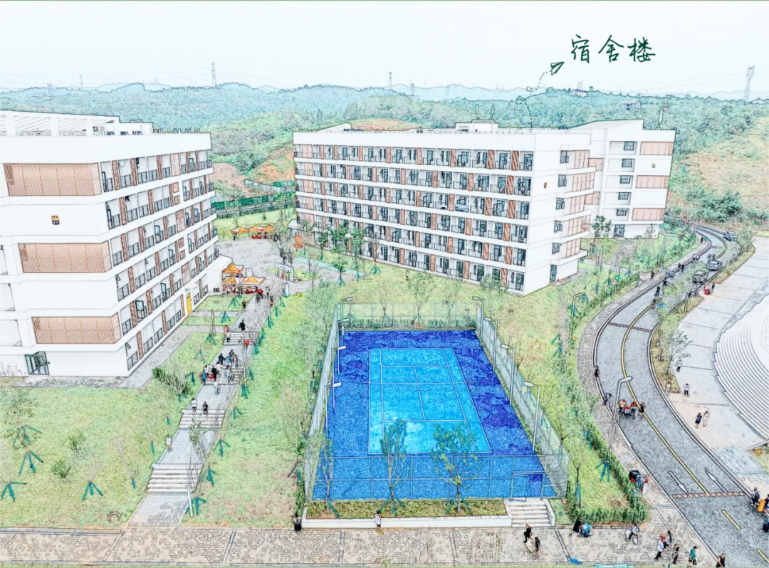 新校區(qū)依山傍水,以自然和科技為主要元素,在保留原始地形高差和水系的前提下,充分融入科技元素,配備了全覆蓋式智慧校園應(yīng)用系統(tǒng),并為師生配備了空調(diào)、洗衣機(jī)等配套齊全的“星級(jí)”宿舍,引入了先進(jìn)食堂設(shè)施設(shè)備、專(zhuān)業(yè)化物業(yè)管理團(tuán)隊(duì)和知名餐飲商業(yè)品牌,為師生打造方便舒適的學(xué)習(xí)和生活環(huán)境。